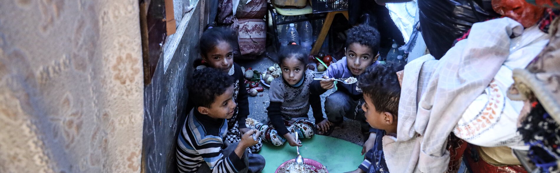 Photo by UNICEF/El Baba, Children at a shelter for the displaced, Gaza.